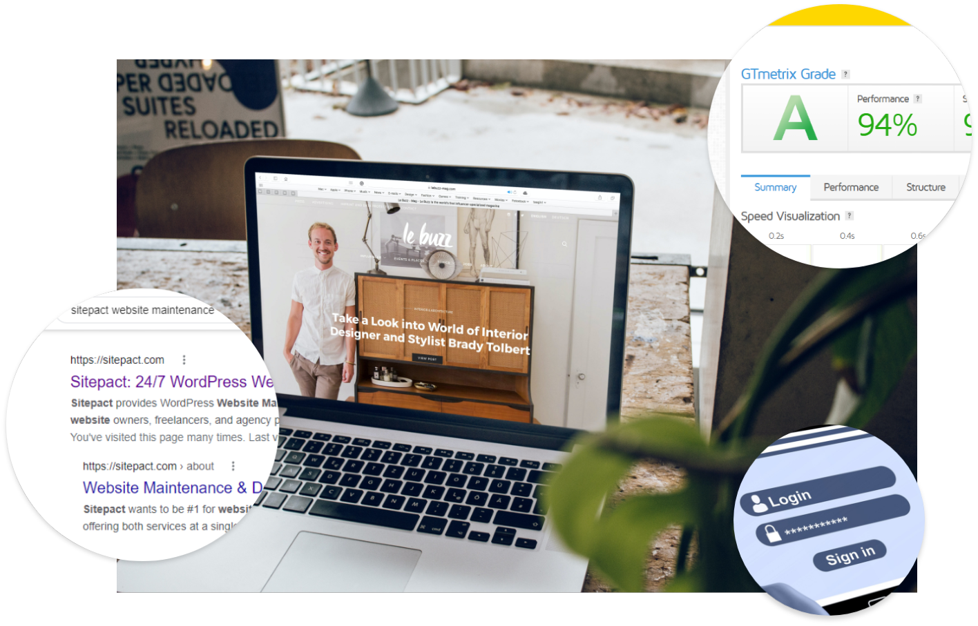 We update WordPress plugins, themes and core versions for you on a daily basis in order to remove plugins that are harmful. Our maintenance service ensures that your site stays up to date.